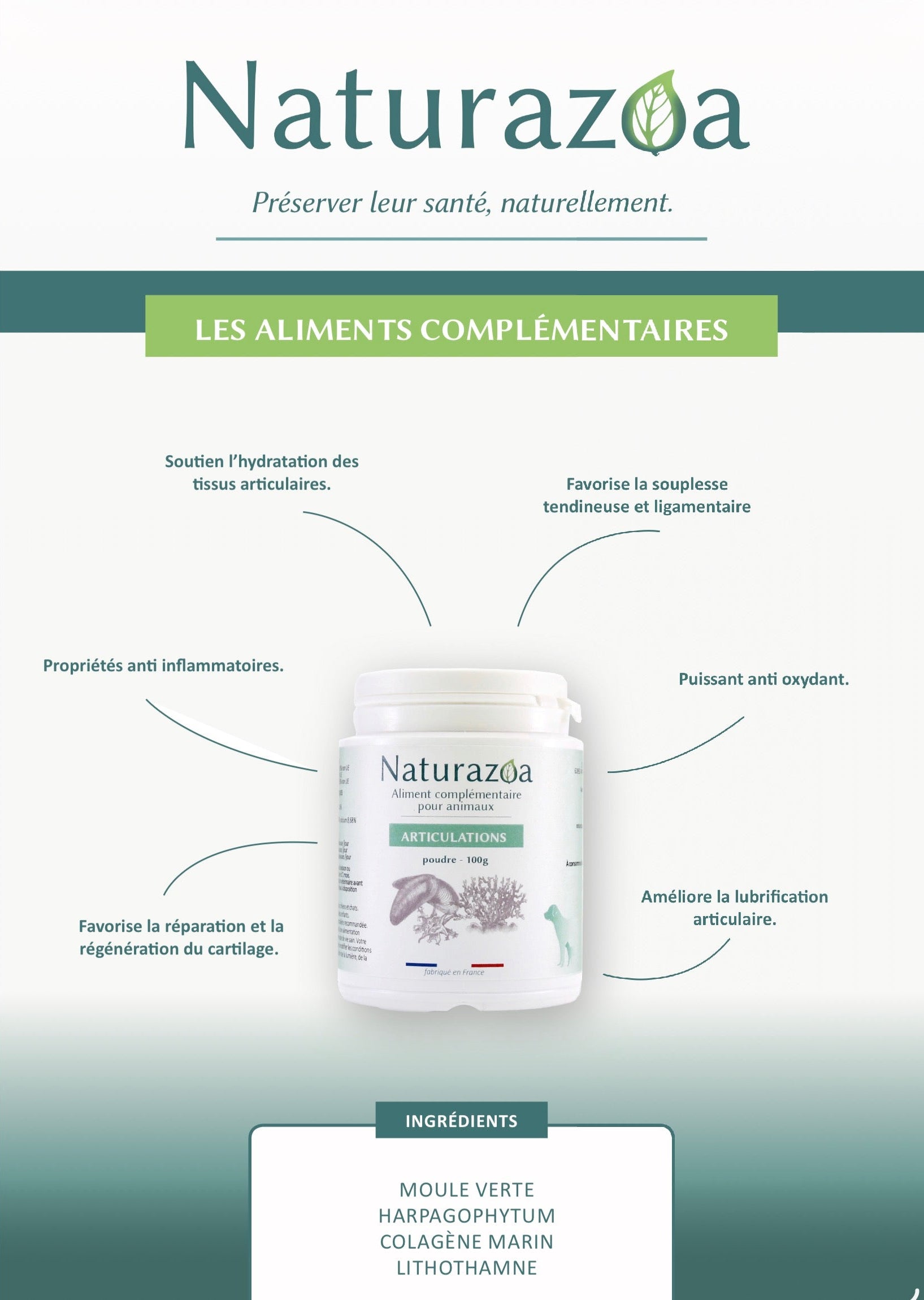 Formule naturelle ultra-concentrée pour maintenir au quotidien la souplesse et le confort articulaire de vos chiens et chats.